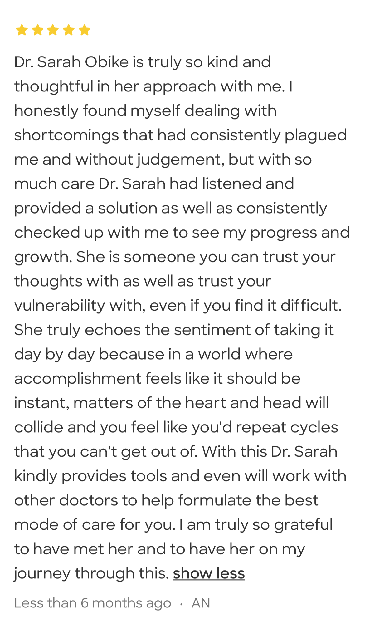 No more five-minute med checks or blank stares. You’ll work with someone who listens deeply, validates your experiences, and designs care that reflects your reality.